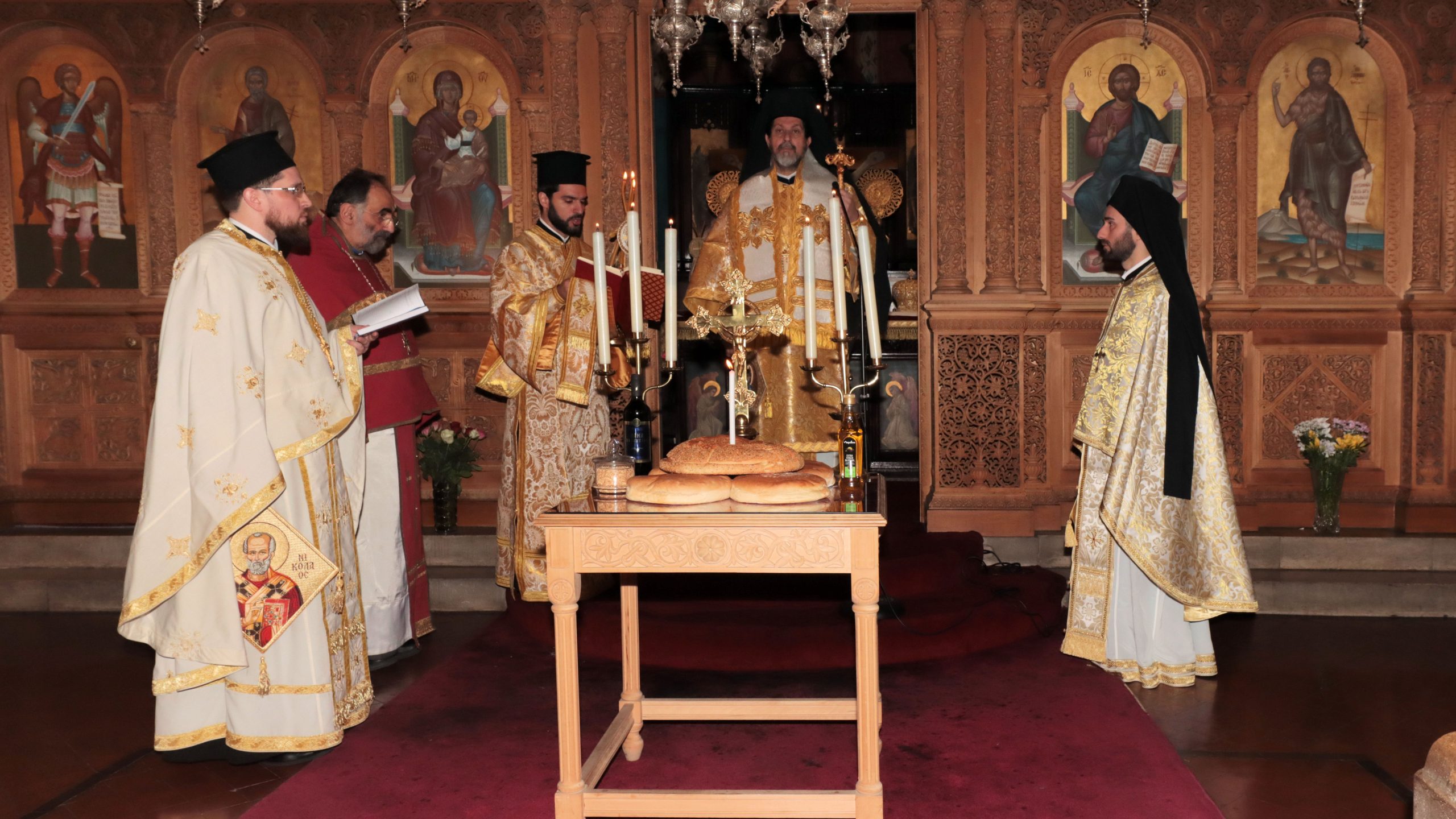 The Sunday of Orthodoxy at St Andrew’s was this year marked by a hierarchical concelebration of His Eminence Archbishop Nikitas of Thyateira and Great Britain, His Eminence Metropolitan Silouan from the Patriarchate of Antioch, and His Grace Bishop Iakovos, who was celebrating the second anniversary of his ordination to the episcopate. Joining them were priests from the Patriarchate of Georgia, the autocephalous Archdiocese of Ohrid and our Archdiocese’s Deanery of Russian tradition.