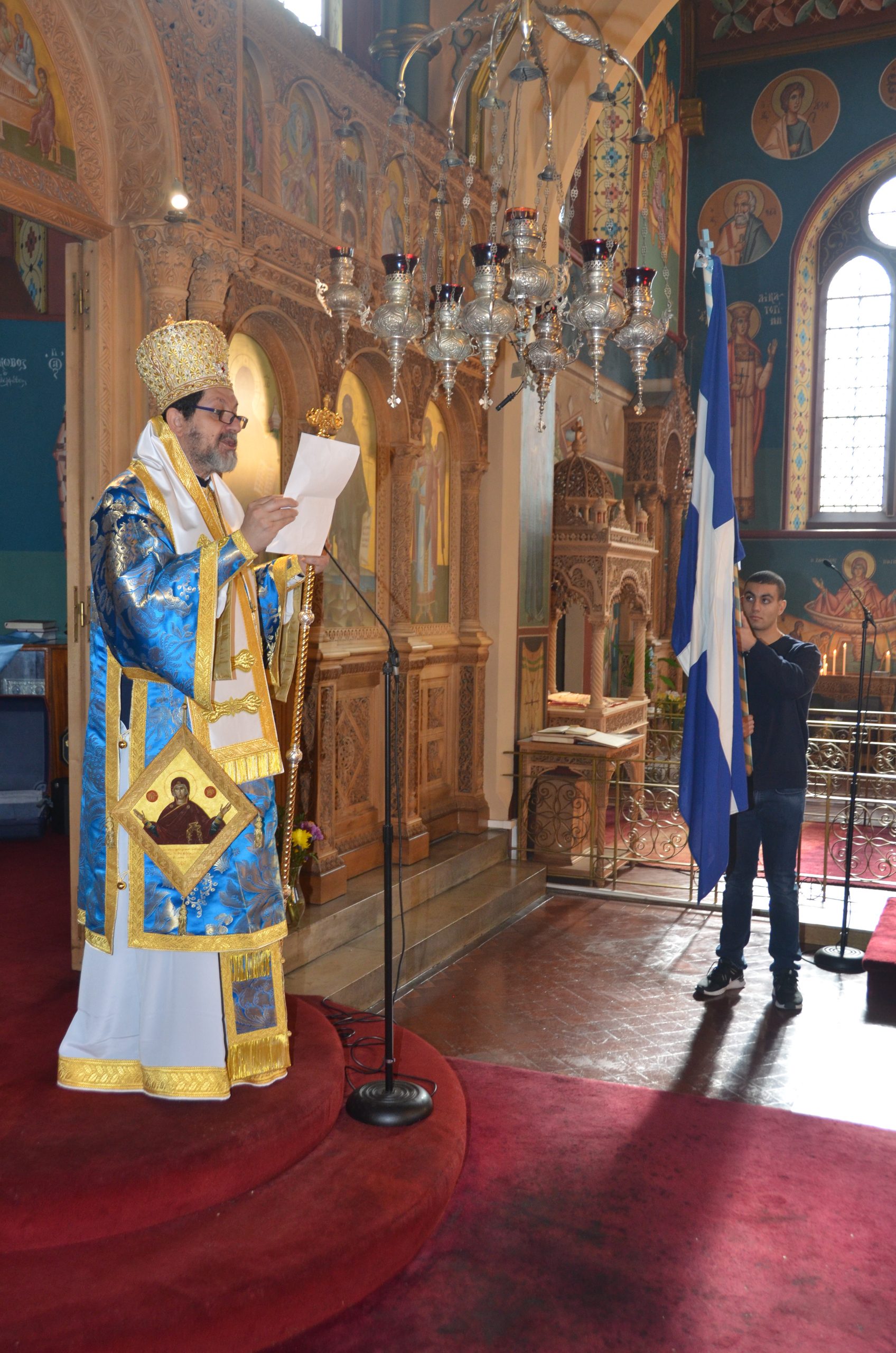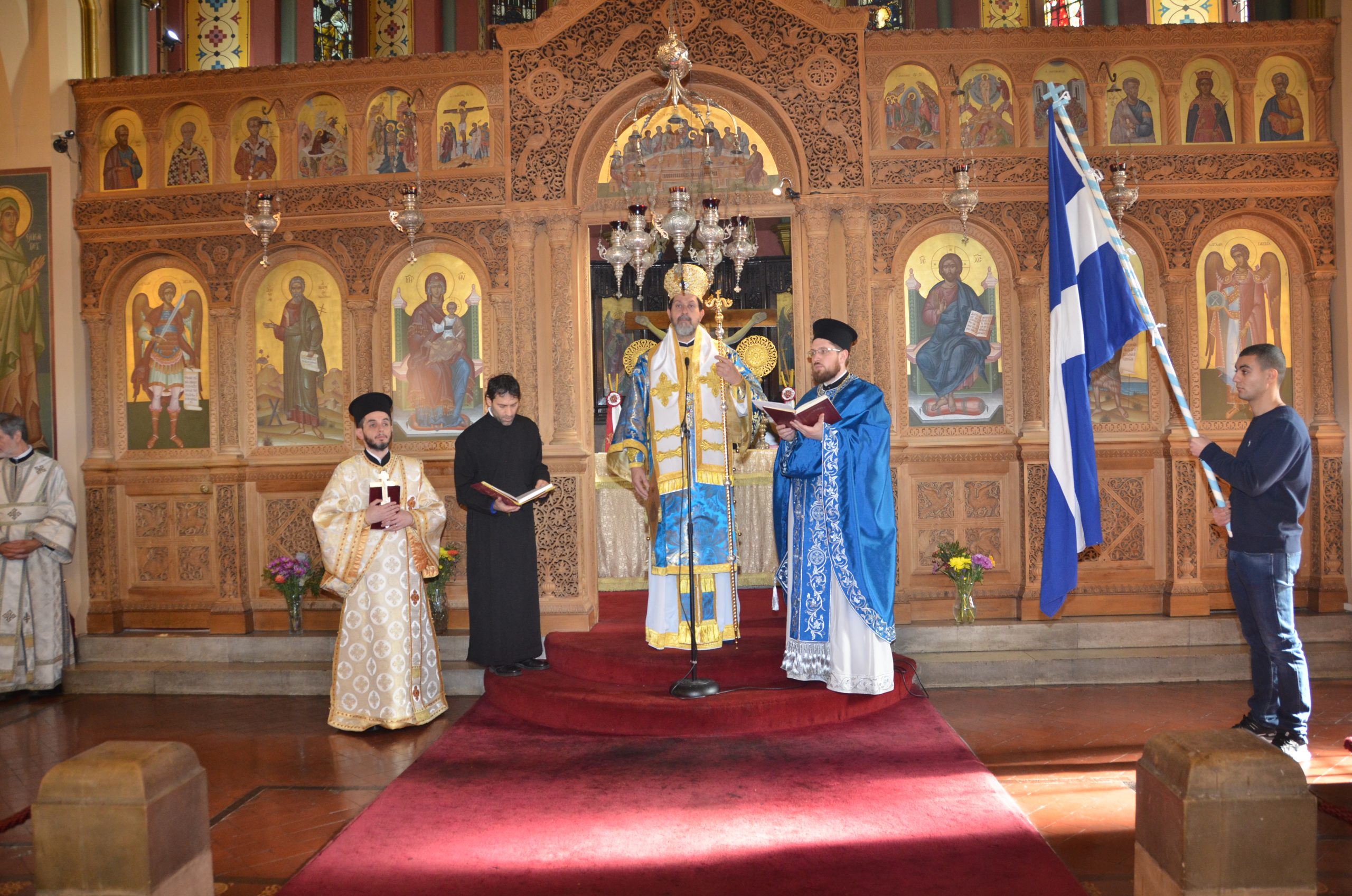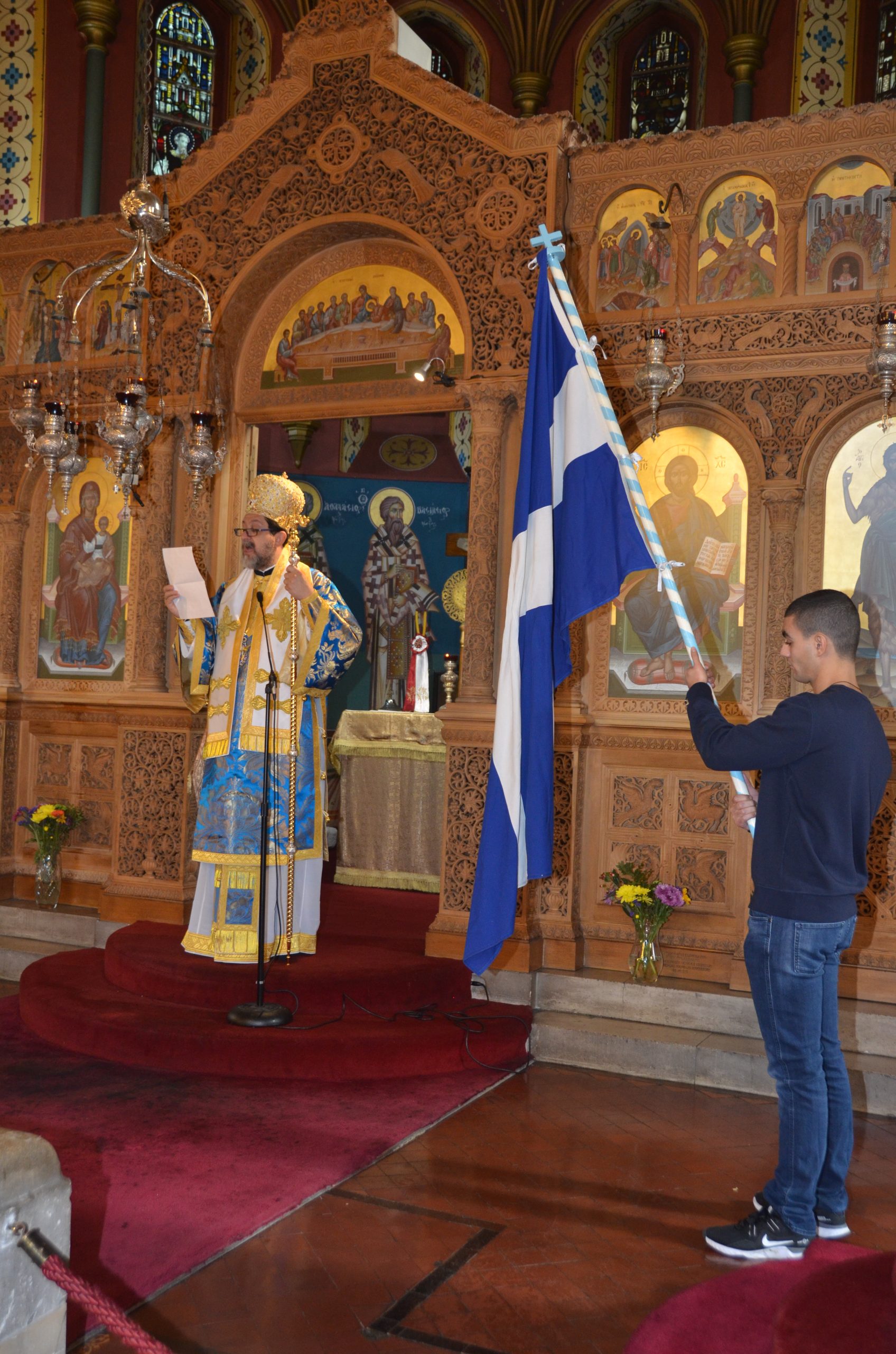 Bishop Iakovos presided over the service of Orthros and the Divine Liturgy, where he delivered a sermon on the Epistle reading of the day, stressing the importance of the Holy Scriptures in the lives of the faithful (click here to read the sermon). After the Diving Liturgy, His Grace presided over the annual Doxology held in honour of ‘ Όχι Day ‘, the Greek nation’s ‘No’ to the ultimatum made by Fascist Italy’s Benito Mussolini on the 28th of October 1940. During the Doxology, His Grace read the encyclical issued by His Eminence Archbishop Nikitas of Thyateira and Great Britain.